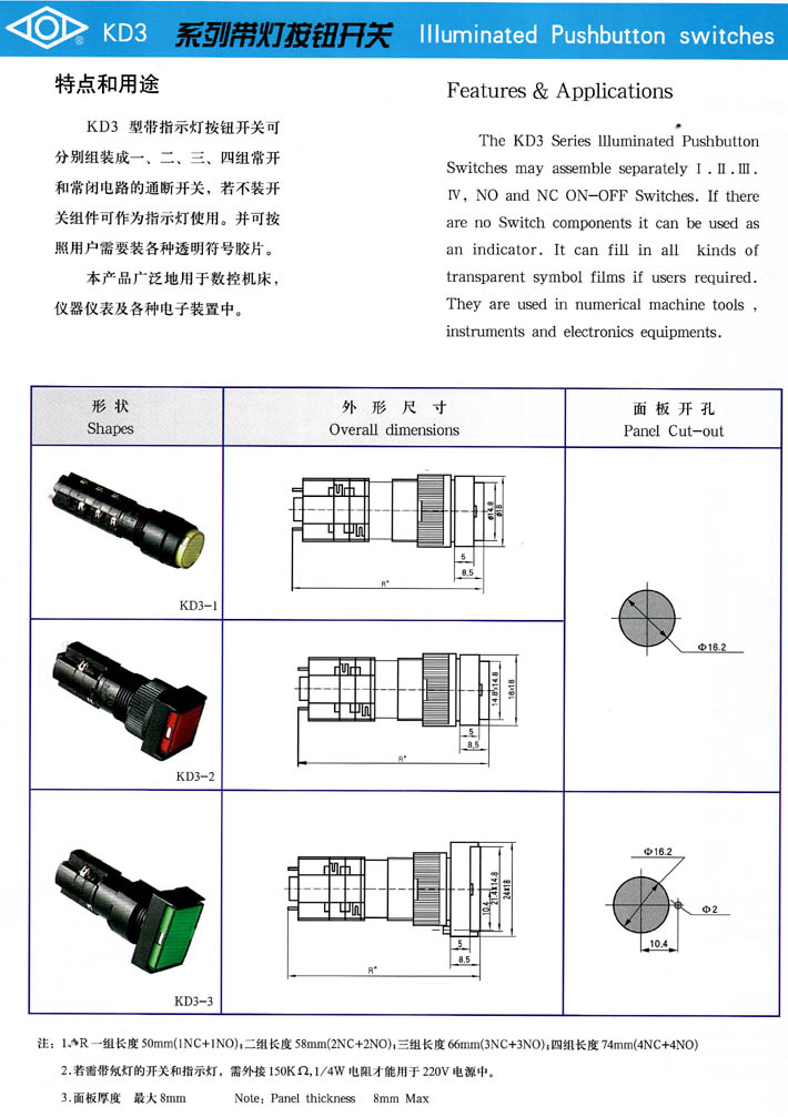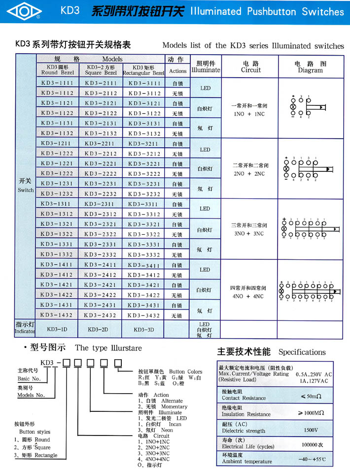 產(chǎn)品型號(hào):KD3系列帶燈按鈕開(kāi)